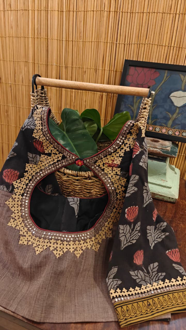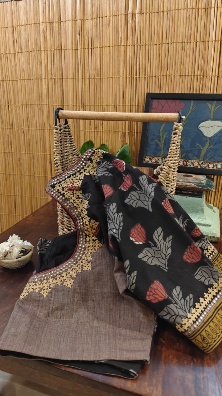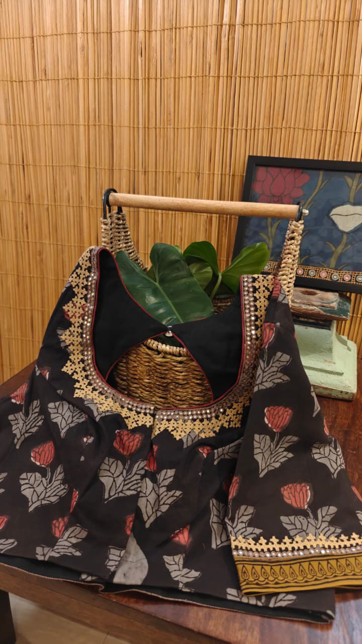 Our artisans creatively hand embroider, hand paint and hand print the blouses that come to you from the design house of SVASA. We use hand woven fabric extensively. You may notice very minute, almost insignificant flaws in the crafts since they are all handmade. We urge our patrons to overlook a few human errors that may have occurred in the process. Our aspirations are towards an empowered society, focusing on keeping traditional needlecraft alive for a long time to come.