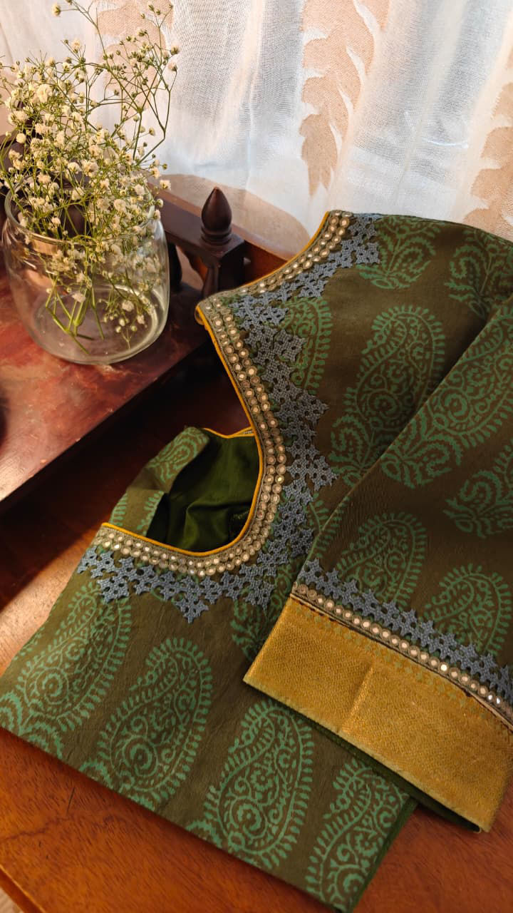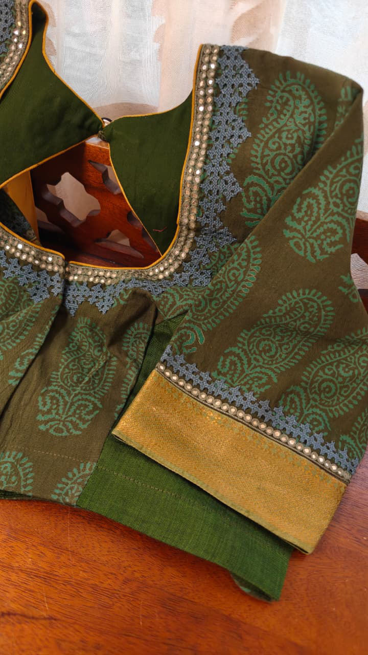 Our artisans creatively hand embroider, hand paint and hand print the blouses that come to you from the design house of SVASA. We use hand woven fabric extensively. You may notice very minute, almost insignificant flaws in the crafts since they are all handmade. We urge our patrons to overlook a few human errors that may have occurred in the process. Our aspirations are towards an empowered society, focusing on keeping traditional needlecraft alive for a long time to come.