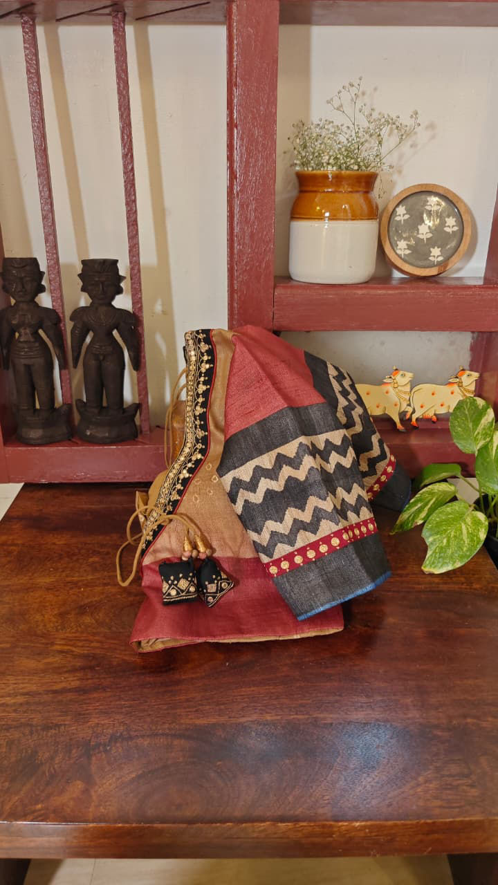 Sungudi. Hand-knotted. Threads breathing history. Light cinnamon tussar merging into deep burgundy — both naturally dyed, both rooted in earth and tradition. 🌿