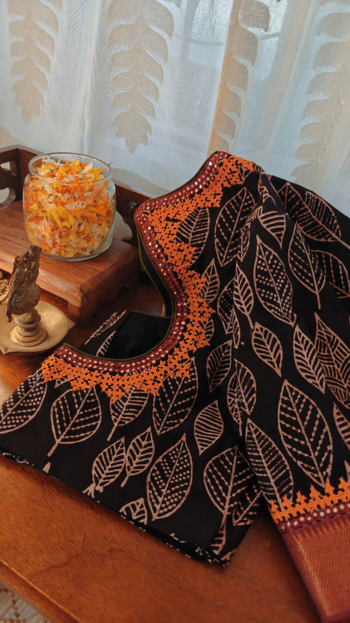 Our artisans creatively hand embroider, hand paint and hand print the blouses that come to you from the design house of SVASA. We use hand woven fabric extensively. You may notice very minute, almost insignificant flaws in the crafts since they are all handmade. We urge our patrons to overlook a few human errors that may have occurred in the process. Our aspirations are towards an empowered society, focusing on keeping traditional needlecraft alive for a long time to come.