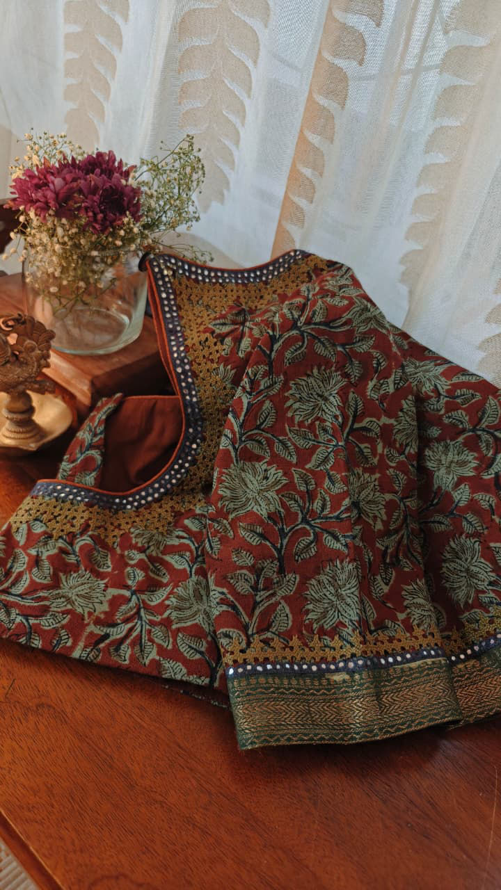 Sunlit Stitches | Block Print & Kutchi olive hues.