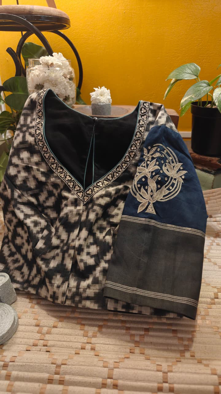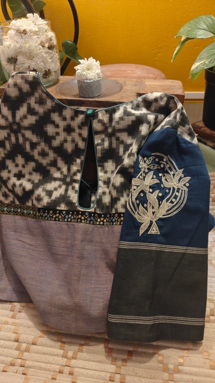 Our artisans creatively hand embroider, hand paint and hand print the blouses that come to you from the design house of SVASA. We use hand woven fabric extensively. You may notice very minute, almost insignificant flaws in the crafts since they are all handmade. We urge our patrons to overlook a few human errors that may have occurred in the process. Our aspirations are towards an empowered society, focusing on keeping traditional needlecraft alive for a long time to come.