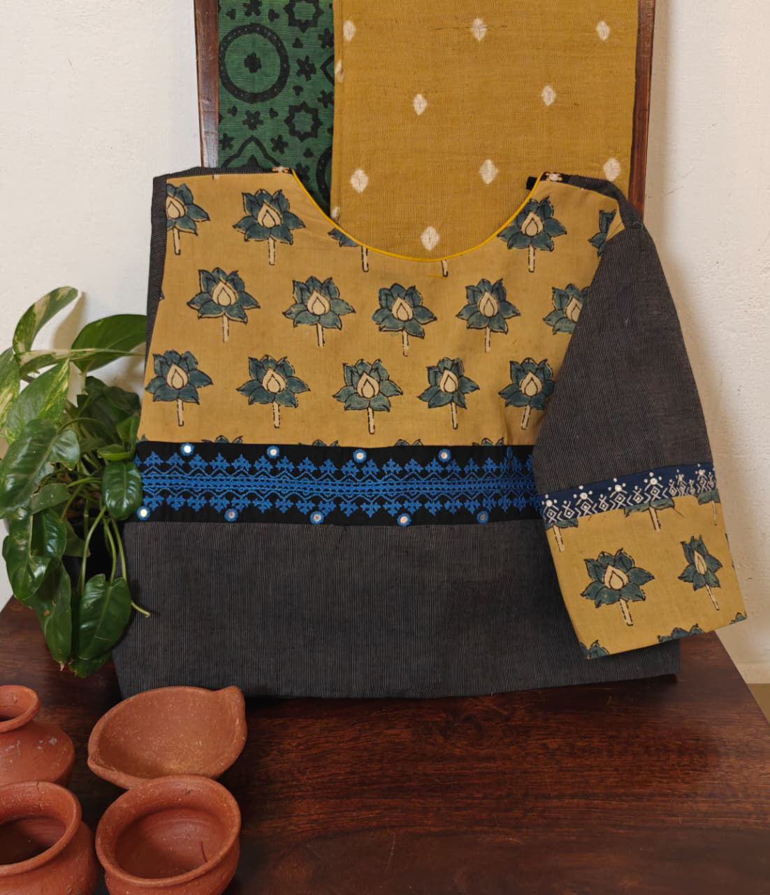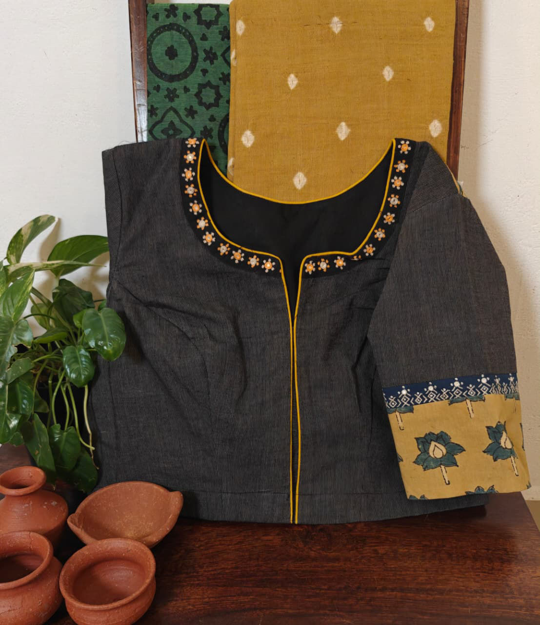 Grey and fenugreek come alive with an unusual kutchi embroidery — a rare blend of earthy tones and heritage craft. Unique, handmade, and timeless. 🪡