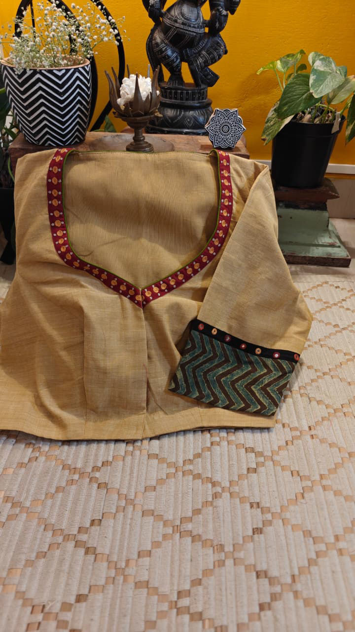 Our artisans creatively hand embroider, hand paint and hand print the blouses that come to you from the design house of SVASA. We use hand woven fabric extensively. You may notice very minute, almost insignificant flaws in the crafts since they are all handmade. We urge our patrons to overlook a few human errors that may have occurred in the process. Our aspirations are towards an empowered society, focusing on keeping traditional needlecraft alive for a long time to come.