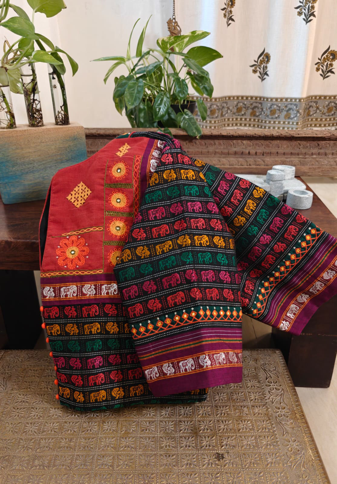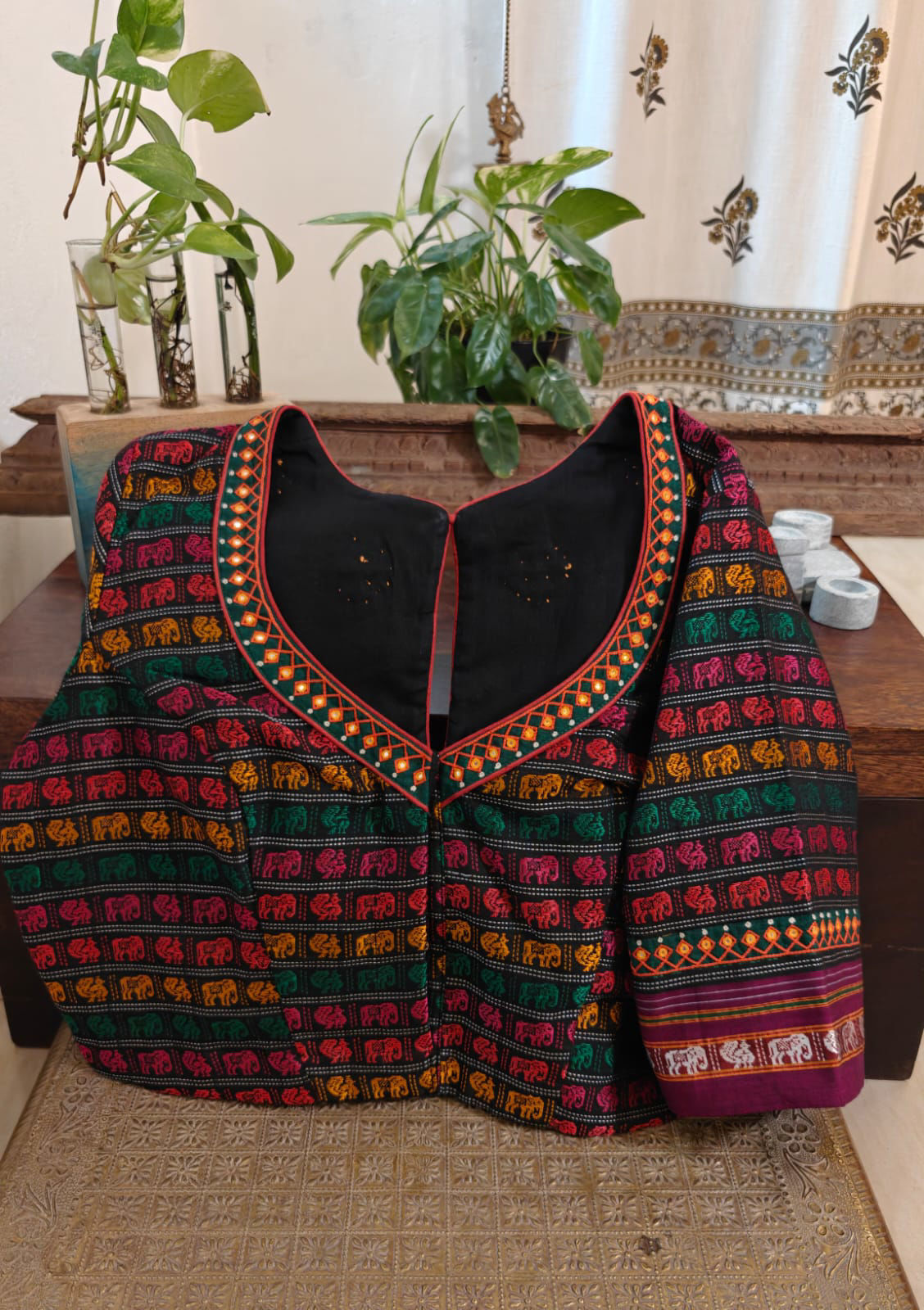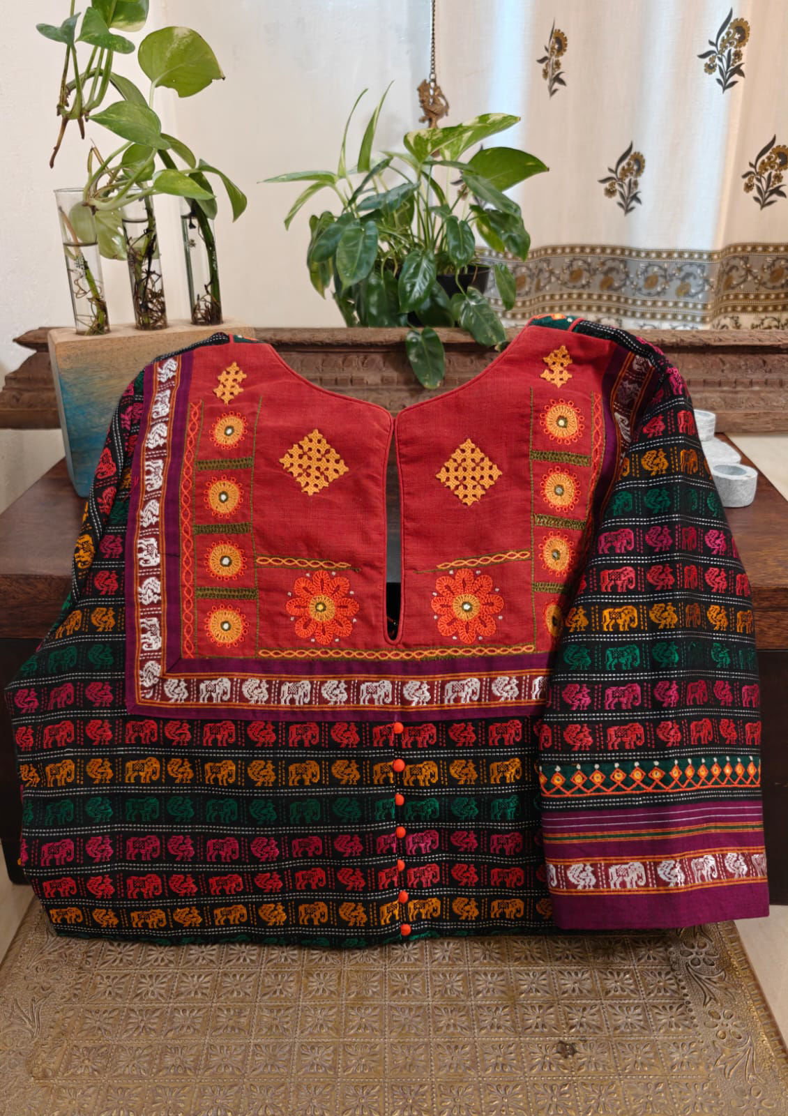 Our artisans creatively hand embroider, hand paint and hand print the blouses that come to you from the design house of SVASA. We use hand woven fabric extensively. You may notice very minute, almost insignificant flaws in the crafts since they are all handmade. We urge our patrons to overlook a few human errors that may have occurred in the process. Our aspirations are towards an empowered society, focusing on keeping traditional needlecraft alive for a long time to come.