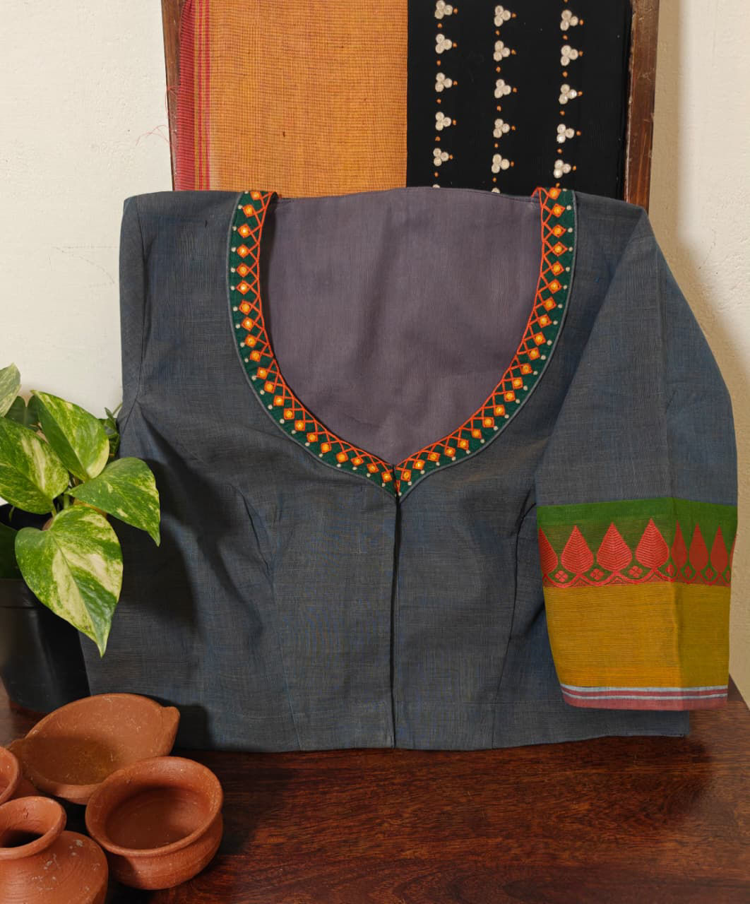 Our artisans creatively hand embroider, hand paint and hand print the blouses that come to you from the design house of SVASA. We use hand woven fabric extensively. You may notice very minute, almost insignificant flaws in the crafts since they are all handmade. We urge our patrons to overlook a few human errors that may have occurred in the process. Our aspirations are towards an empowered society, focusing on keeping traditional needlecraft alive for a long time to come.
