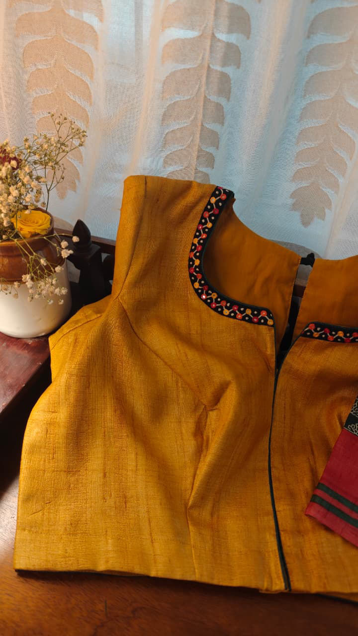 Our artisans creatively hand embroider, hand paint and hand print the blouses that come to you from the design house of SVASA. We use hand woven fabric extensively. You may notice very minute, almost insignificant flaws in the crafts since they are all handmade. We urge our patrons to overlook a few human errors that may have occurred in the process. Our aspirations are towards an empowered society, focusing on keeping traditional needlecraft alive for a long time to come.