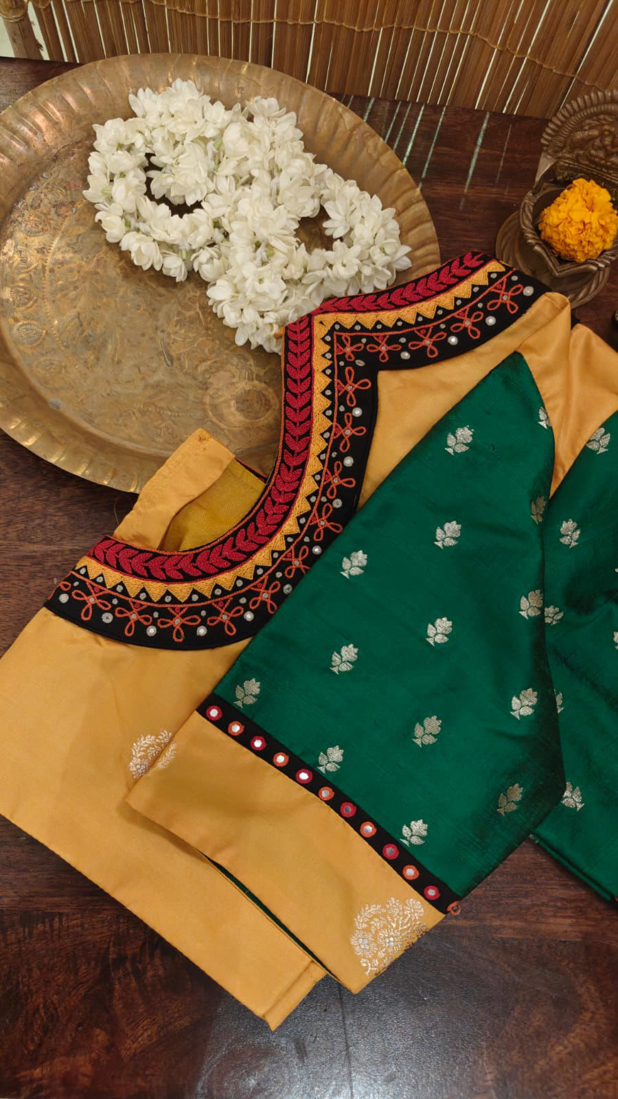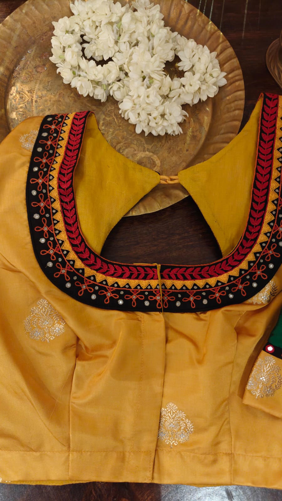 Our artisans creatively hand embroider, hand paint and hand print the blouses that come to you from the design house of SVASA. We use hand woven fabric extensively. You may notice very minute, almost insignificant flaws in the crafts since they are all handmade. We urge our patrons to overlook a few human errors that may have occurred in the process. Our aspirations are towards an empowered society, focusing on keeping traditional needlecraft alive for a long time to come.