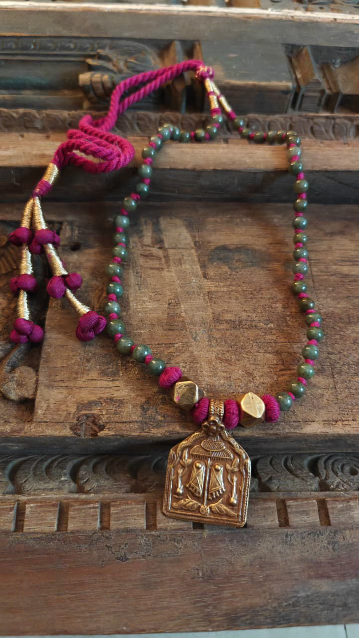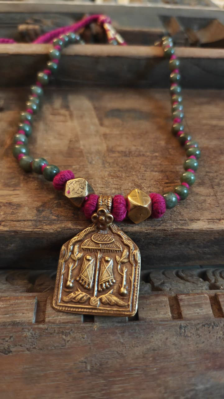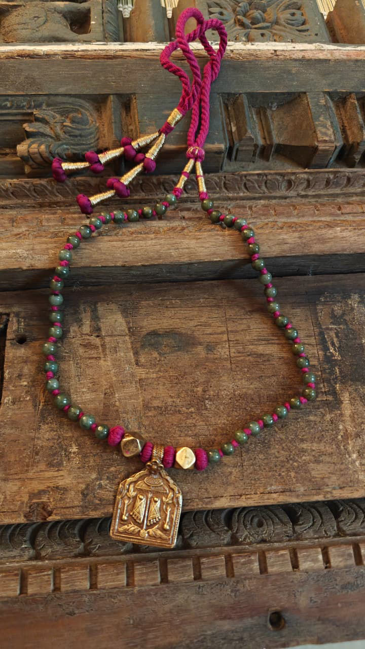 A heritage Pathri from Rajasthan, gold plated and strung with hand-knotted jade beads. A dash of merlot threads adds depth, making this Pavazham jewel a true classic. Handcrafted in 92.5 silver at Svasa. π¦ Ships within India. Please Note: β¨ As each jewellery piece is crafted with care, weβre unable to offer exchanges or returns. β¨ If your order reaches you with any damage, please record an unboxing video and share it with us. Weβll be happy to make things right for you.