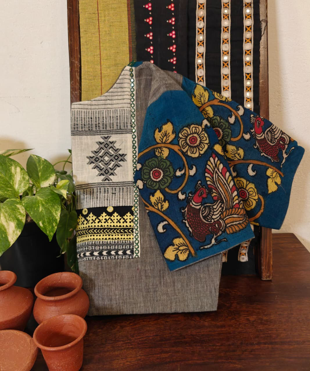Our artisans creatively hand embroider, hand paint and hand print the blouses that come to you from the design house of SVASA. We use hand woven fabric extensively. You may notice very minute, almost insignificant flaws in the crafts since they are all handmade. We urge our patrons to overlook a few human errors that may have occurred in the process. Our aspirations are towards an empowered society, focusing on keeping traditional needlecraft alive for a long time to come.